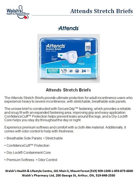 The Attends Stretch Briefs provide ultimate protection for adult incontinence users who experience heavy to severe incontinence, with stretchable, breathable side panels.