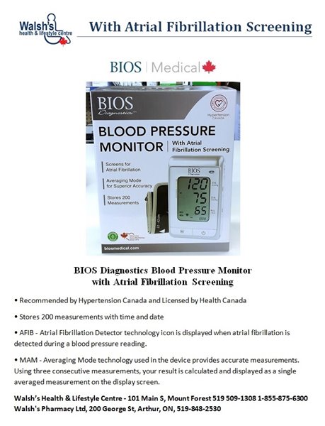 The BIOS Diagnostics Blood Pressure Monitor – with Atrial Fibrillation Screening, has built-in technology to screen for Afib. Afib is a serious heart rhythm abnormality that accounts for 15% of strokes. Once detected, it can be treated effectively.