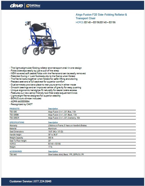 Airgo Fusion 2-in-1 Rollator/Transport Chair