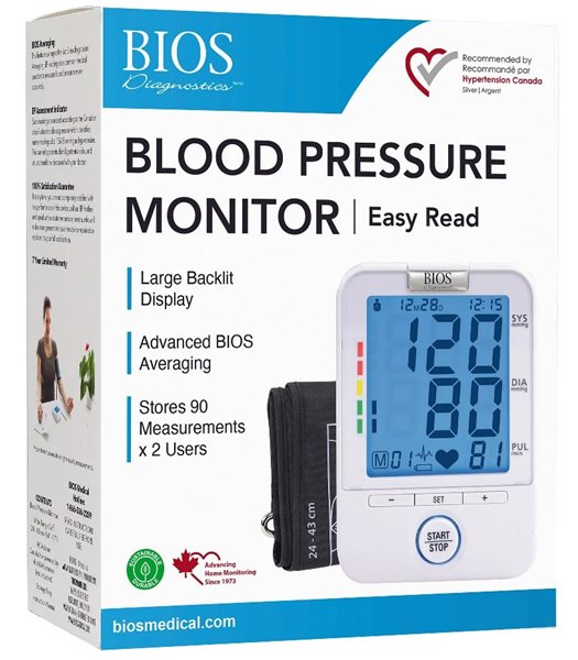 The Easy Read blood pressure monitor device is the best mid-range blood pressure monitor on the market! The advanced BIOS Averaging feature provides insight on AM, PM, and overall BP readings! Easy-to-use, and gives the accuracy that you have come to know from BIOS Diagnostics.