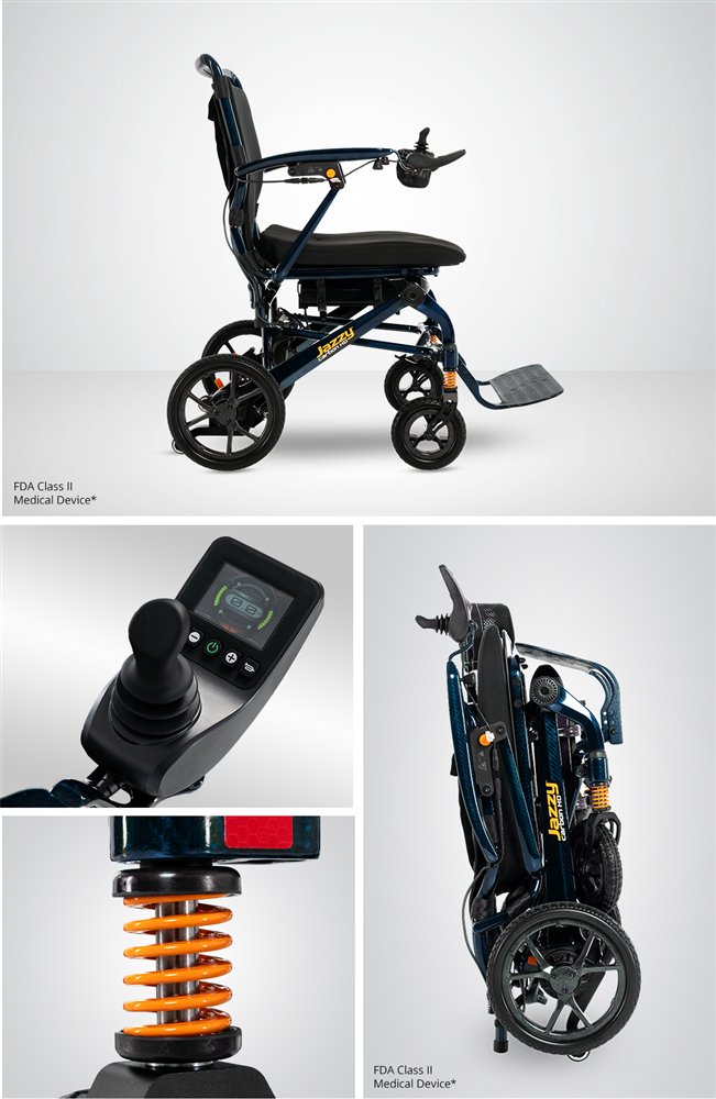 The roomy 20 x 20” seat, adjustable padded seat back, removable cushion, and extra-wide adjustable foot platform are designed for your comfort. It also has front and rear suspension providing a smooth ride over varied terrain. Jazzy® is known for world-class quality, a commitment to the industry’s most rigorous testing standards, and proven performance over three decades. You will get all of that with the Jazzy® Carbon HD! Travel worry-free and experience the best in lightweight portability!