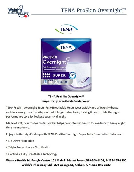 TENA ProSkin Overnight Super Fully Breathable Underwear quickly and efficiently draws moisture away from the skin, even with larger urine leaks, locking it deep inside the high-performance core for leakage security all night. Made of soft, breathable materials that helps promote skin health for medium to heavy night time incontinence.